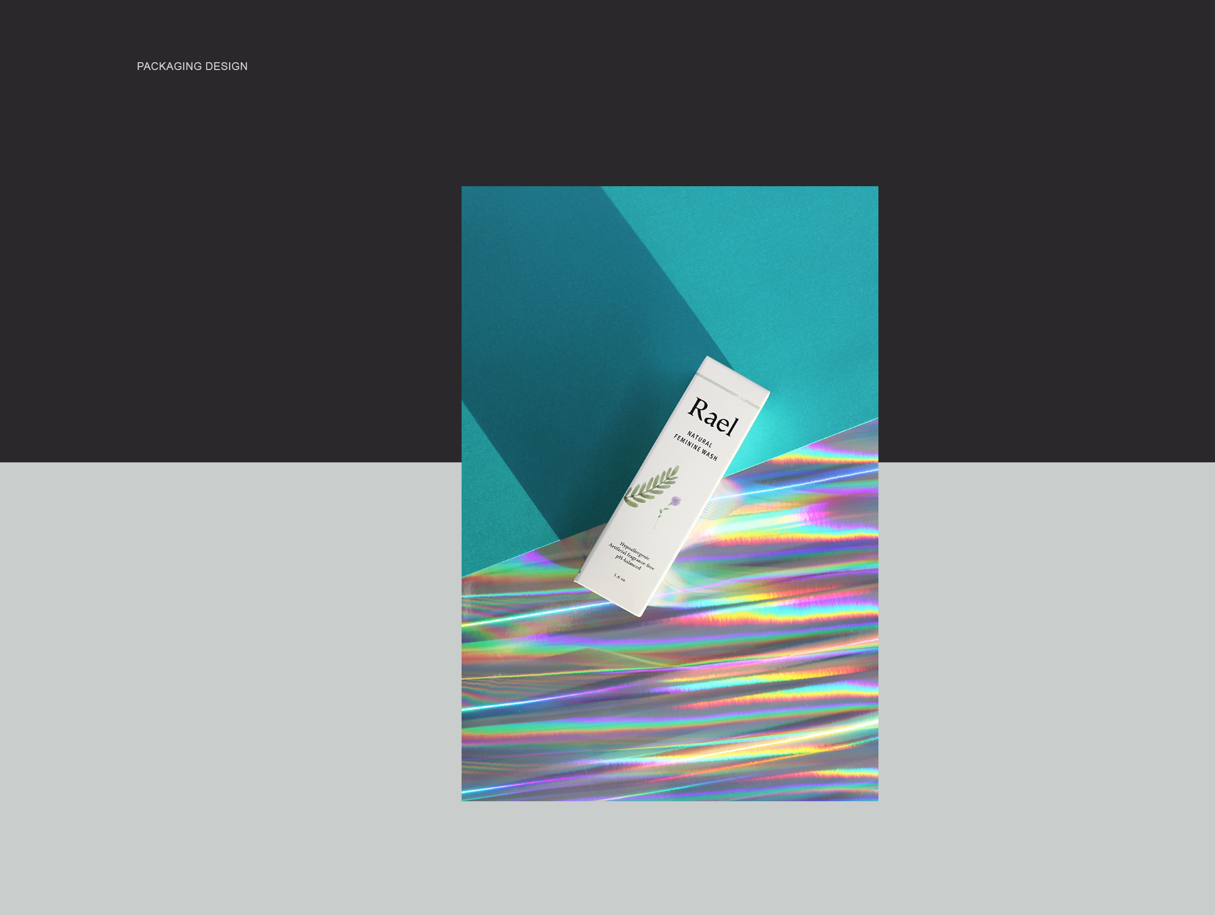 ‘Released in November 2017, Rael’s striking mask package design was inspired by trendy and modern collage art to resemble different shapes and forms to emphasize the dramatic moment of women’s nature. It was created with 4 main colors to represent the natural and organic concept: pale blue for water, peachy pink for the skin, lime yellow for new vitamins, and sage green for tea tree.’ by Jina A Lee.